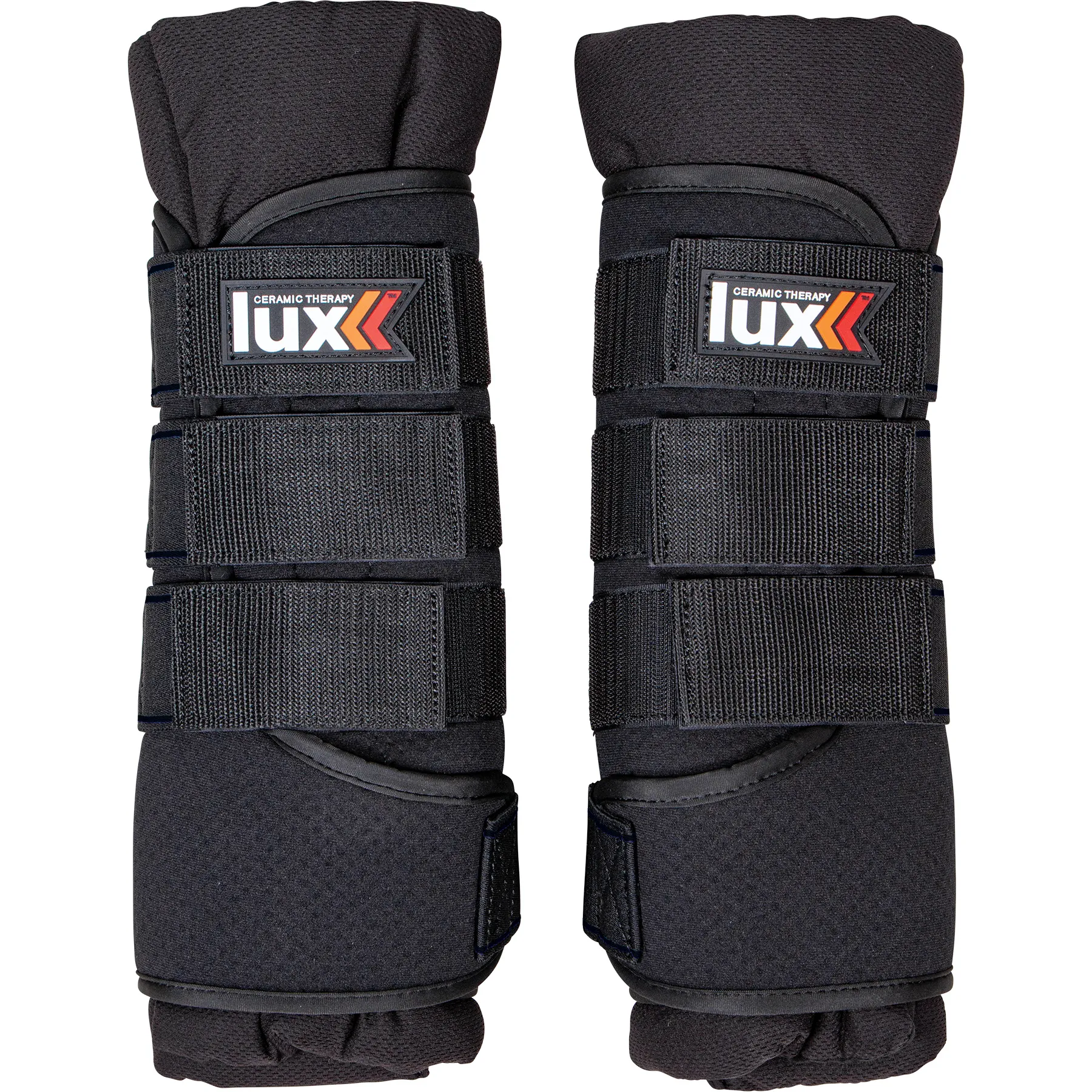 Easy-to-use Lux Ceramic Therapy® Quick Wraps for horses can be applied before and after exercise or training to speed up warm-up and recovery of the horse’s legs. Ceramic Therapy is a cost-effective, powerful rehab, recovery, and preventative maintenance solution. The ceramic fibers in Lux® reflect heat into the body as far infrared rays (FIR). FIR expands blood vessels and increases circulation, allowing the body to fuel working muscles and repair damage more efficiently. The added Tekno Dri® material keeps the legs cooler and wicks away moisture from their legs. These wraps will break down scar tissue and reduce wind puffs without liniment or poultice, making them great for reducing inflammation caused by cellulitis.